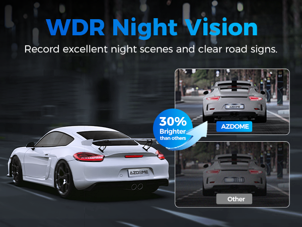 • AZDOME M300S dash cam front and rear with Advanced sensor improves increase exposure automatically in dark situations allowing clear imaging in low light environments. The F1.8 large aperture ensures the clarity of images at night. The dashcams for cars clearly display road details such as license plate numbers and road signs, making it a trusted guardian of your car day and night.