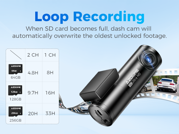 • A 64GB SD card is included. Please DO NOT USE any “SanDisk Ultra” or "Generic Class 10 for HD Video" cards from third-party sellers. They are NOT suitable for a high-end 4K dash cam like this one.