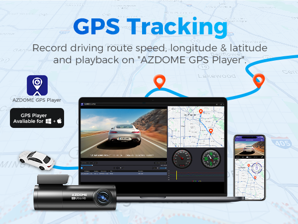 Azdome GPS player can display the speed, route, latitude and longitude of the recording area. M300S Car Dashcam can provide evidence in emergency situations. GPS dashboard camera can fully record the driving route data. This helps you understand the vehicle's trajectory, such as whether the vehicle enters a prohibited area or whether it crosses the border.